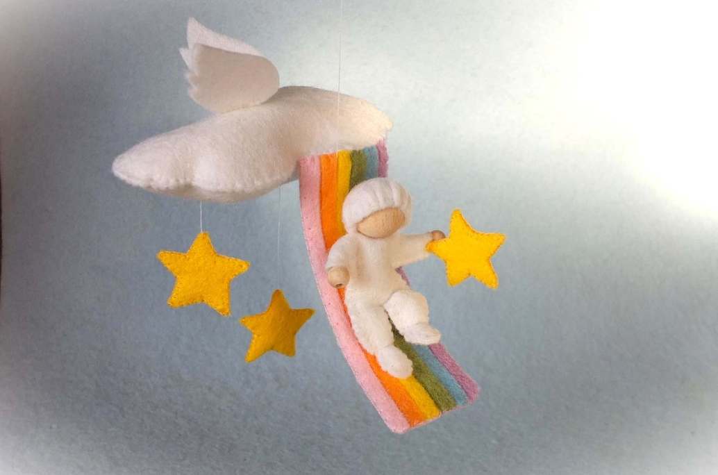 Ein kleiner Engel der über die Regenbogenbrücke zur Erde geht, zum selbermachen